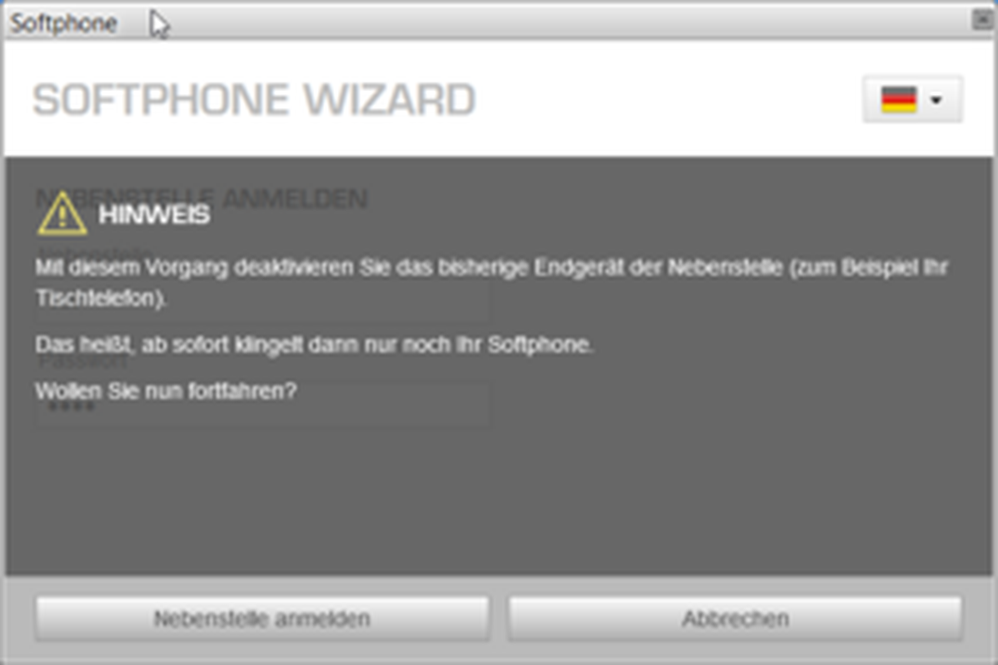 "Please note that this process deactivates the existing device (for example your desk telephone). I.e., from now on, only the Nsoftphone client rings."