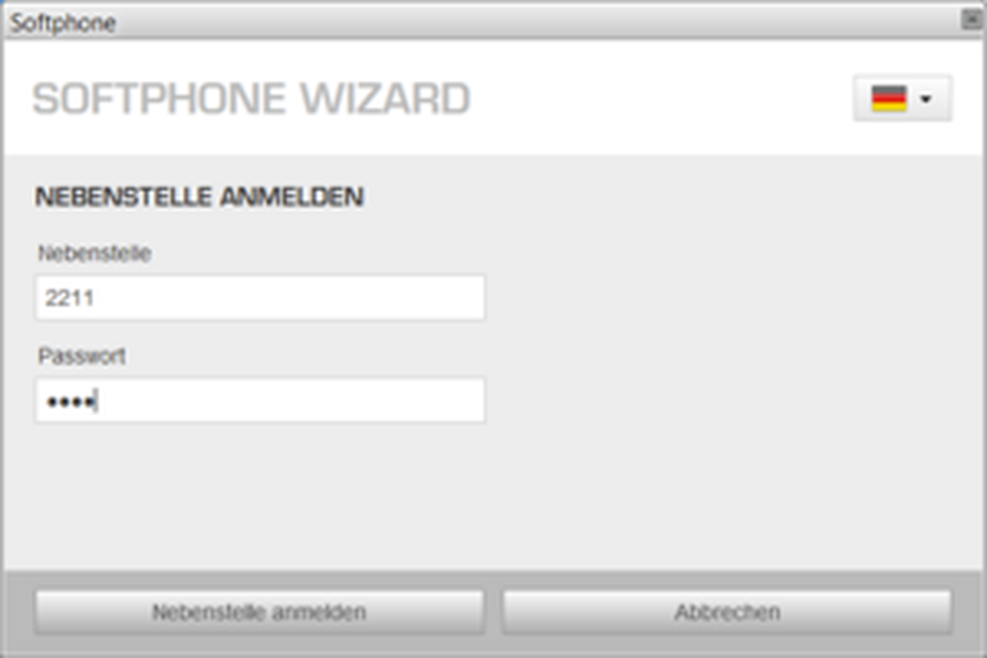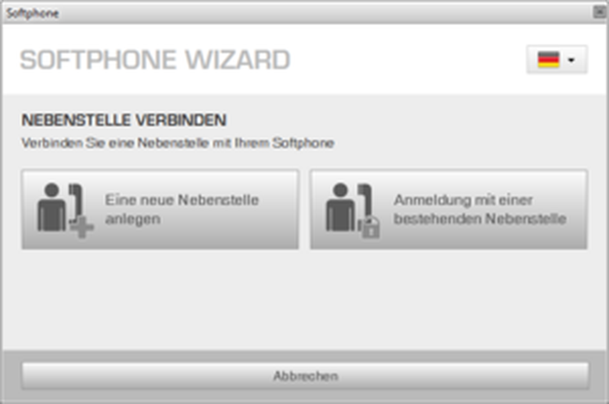 After logging in with your customer number and password the Nsoftphone launches. However, an extension is not yet assigned. Please click on the yellow arrow, the following window opens up: